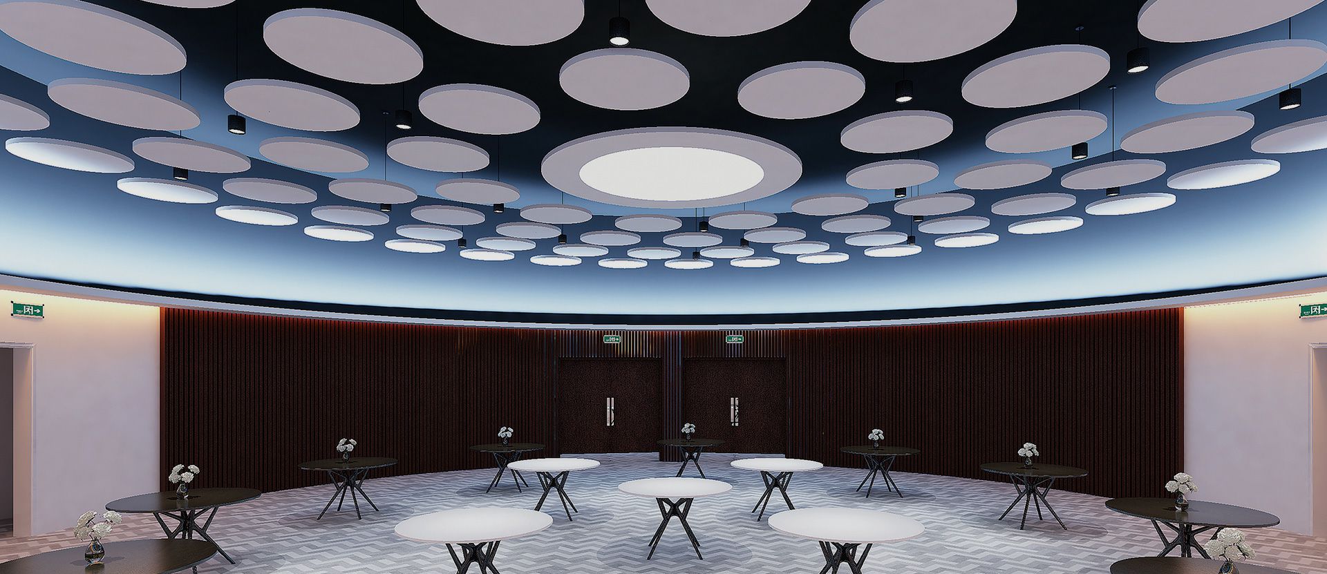 4、天花板:对于天花板设计常见的就是三种方式。一就是以比较特殊的矿纤板进行设计,这样可以摆脱室内出现混杂的声音,从而带来更好的体验度。第二可以用比较小的弧面板进行装饰,然后再搭配上吸音棉的设计,这样会具有非常好的